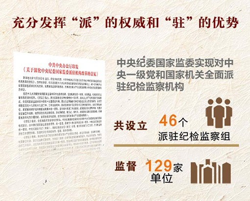 深化派驻机构改革,健全了领导体制,实现了全覆盖,推动派驻监督更加严密、更加有力。党中央明确派驻机构是中央纪委国家监委重要组成部分,由中央纪委国家监委直接领导、统一管理,实现对中央一级党和国家机关派驻监督全覆盖。这些体制设计,为派驻机构担当作为提供了制度保障。驻中央组织部纪检监察组作为新设立派驻机构,综合监督6家单位。组建初期,没有现成经验可循,我们一直在思考,工作从哪里入手?有什么抓手?我们反复学习领会中央精神,感到最重要的是牢记身份,紧紧围绕中央明确的职责权限,在中央纪委国家监委领导下开展工作。实践中,主动对标对表,每当习近平总书记有重要指示,中央纪委国家监委有重要部署,我们都第一时间传达学习,着力提高政治站位,研究贯彻落实措施;主动汇报情况,不仅主动向中央纪委国家监委报告开展工作情况,也报告驻在部门履行全面从严治党责任进展成效,根据中央纪委国家监委指示要求,不断优化细化思路举措;主动争取指导,经常与中央纪委国家监委有关部门沟通,有问题主动请教,有困难争取支持,委机关各部门精心指导我们把工作有效地开展起来。实践表明,通过加强对派驻机构的领导和管理,派驻“探头”全天候运作,把监督延伸到各个部门,打通了“最后一公里”,党员干部感受到“监督就在眼前,中央纪委就在身边”。