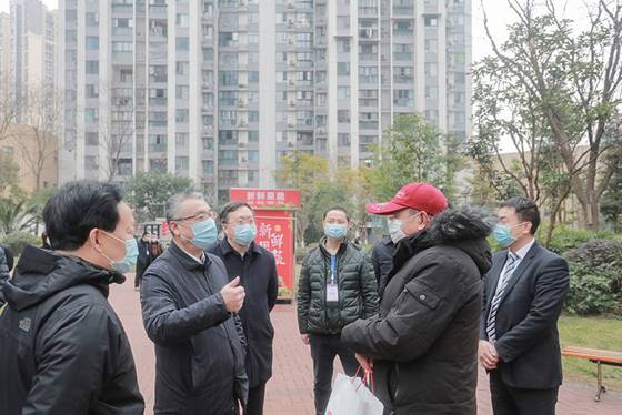 四川省纪委监委领导在乐山市市中区通江街道蟠龙社区督导检查疫情防控工作。
