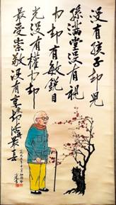 画上,满头银发、拄着拐杖的帅孟奇与盛放的“粗干老梅”并立着,身姿是那样挺拔、笑容是那么温暖,透过画面,我们仿佛能闻到“老梅”那凌寒怒放的沁人清香,感受到老人那“傲霜战雪”的革命情操……