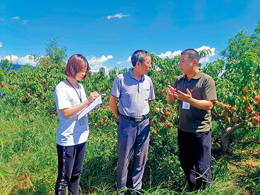山东省莱州市采用“巡镇带村”机制,扎实推进村居巡察全覆盖。图为巡察组工作人员在虎头崖镇小沟村和果农交谈,了解惠农政策落实和干部作风情况。(胡凯旋)