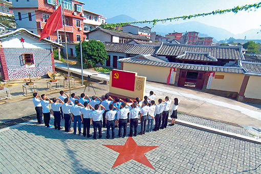 福建省永春县纪委监委组织纪检监察干部到革命旧址、纪念馆等地开展革命传统教育,了解红色历史、坚守初心使命。图为纪检监察干部在县革命历史纪念馆前重温入党誓词。(陈跃虹)