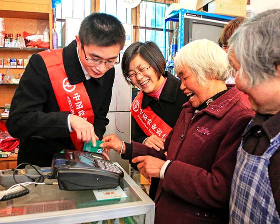 农行工作人员正在向村民讲解使用惠农通。