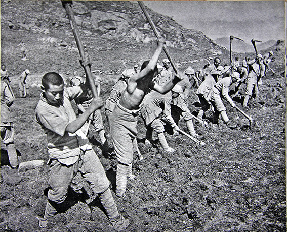 1941年初,在“一把镢头一支枪,生产自给保卫党中央”的口号声中,八路军三五九旅进驻南泥湾。广大官兵用自己的双手和汗水,将荒无人烟的南泥湾变成了“平川稻谷香,肥鸭遍池塘。到处是庄稼,遍地是牛羊”的陕北好江南。