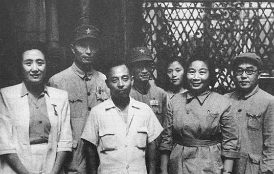 1949年夏,章蕴(右二)与张爱萍、曹荻秋、陈同生、董竹君等人在上海合影。