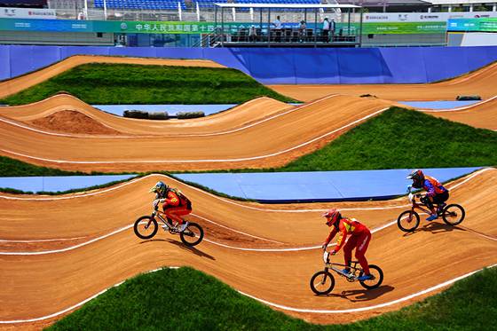 为确保第十四届全国运动会筹办工作廉洁高效推进,陕西省纪检监察机关立足职能职责,围绕项目建设等事项开展监督,严查腐败和作风问题。图为十四运会小轮车项目测试赛在西咸新区秦汉新城十四运会小轮车项目比赛场馆举办。