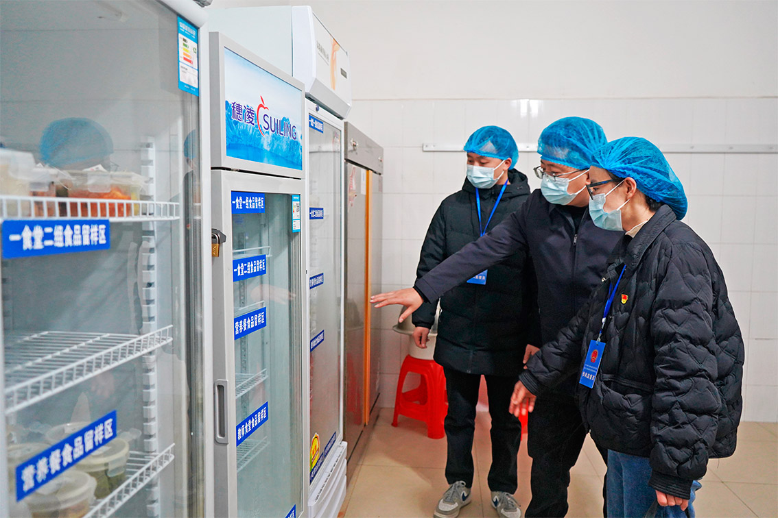 重庆市秀山县纪检监察干部在学校食堂了解情况。