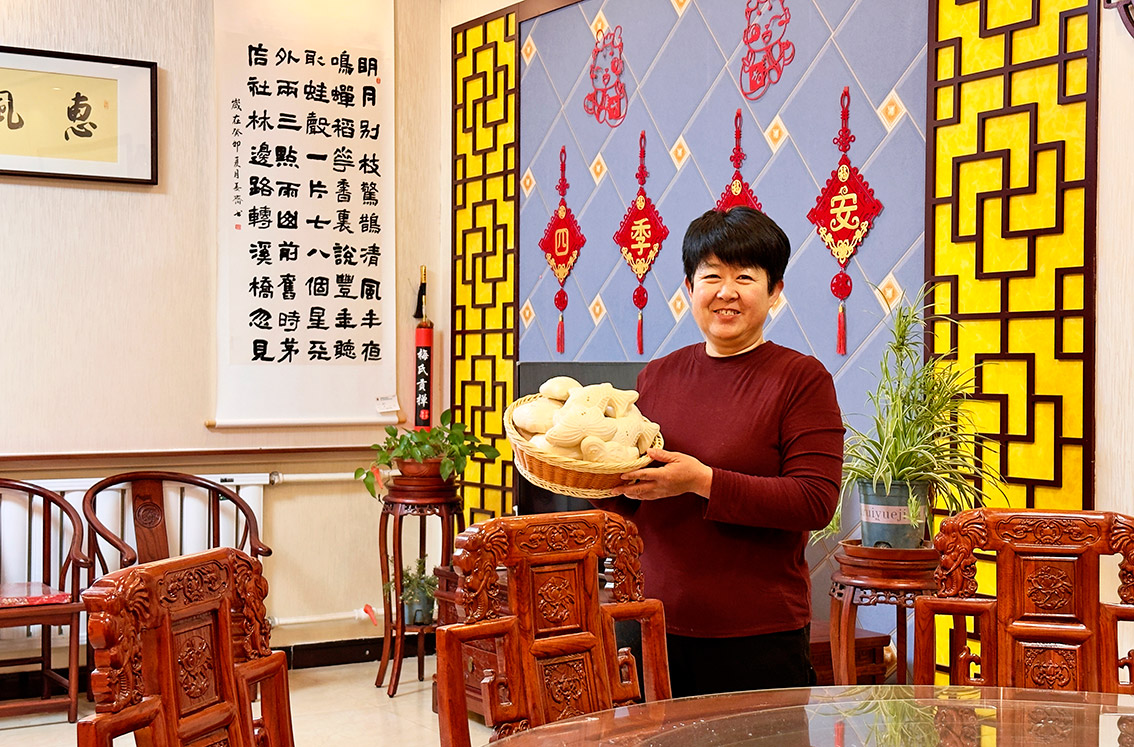 以旱碱麦面粉为原料制作的黄骅特产面花麦香浓郁、软绵筋道,走俏春节年货市场。王浩宾/摄
