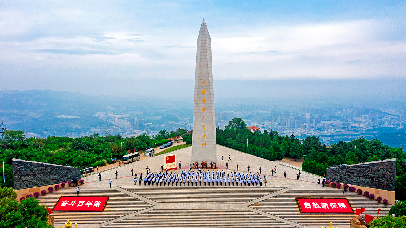 “战绩辉煌 永垂史册”,在纪念馆不远处,高40米的百团大战纪念碑如一把锋利的刺刀直击苍穹,象征着中华民族不畏强暴、威武不屈、抗击外侮的革命精神。纪念碑一侧矗立的“英烈墙”上,4860名革命先烈的英名,在阳光的照耀下熠熠生辉。百团大战所呈现出的爱国情怀、英雄气概和顽强作风,成为党领导下的人民军队的光荣传统,凝聚成伟大的抗战精神,激励新时代广大党员干部勇担使命,鼓舞亿万中华儿女在民族复兴的新征程上续写荣光。