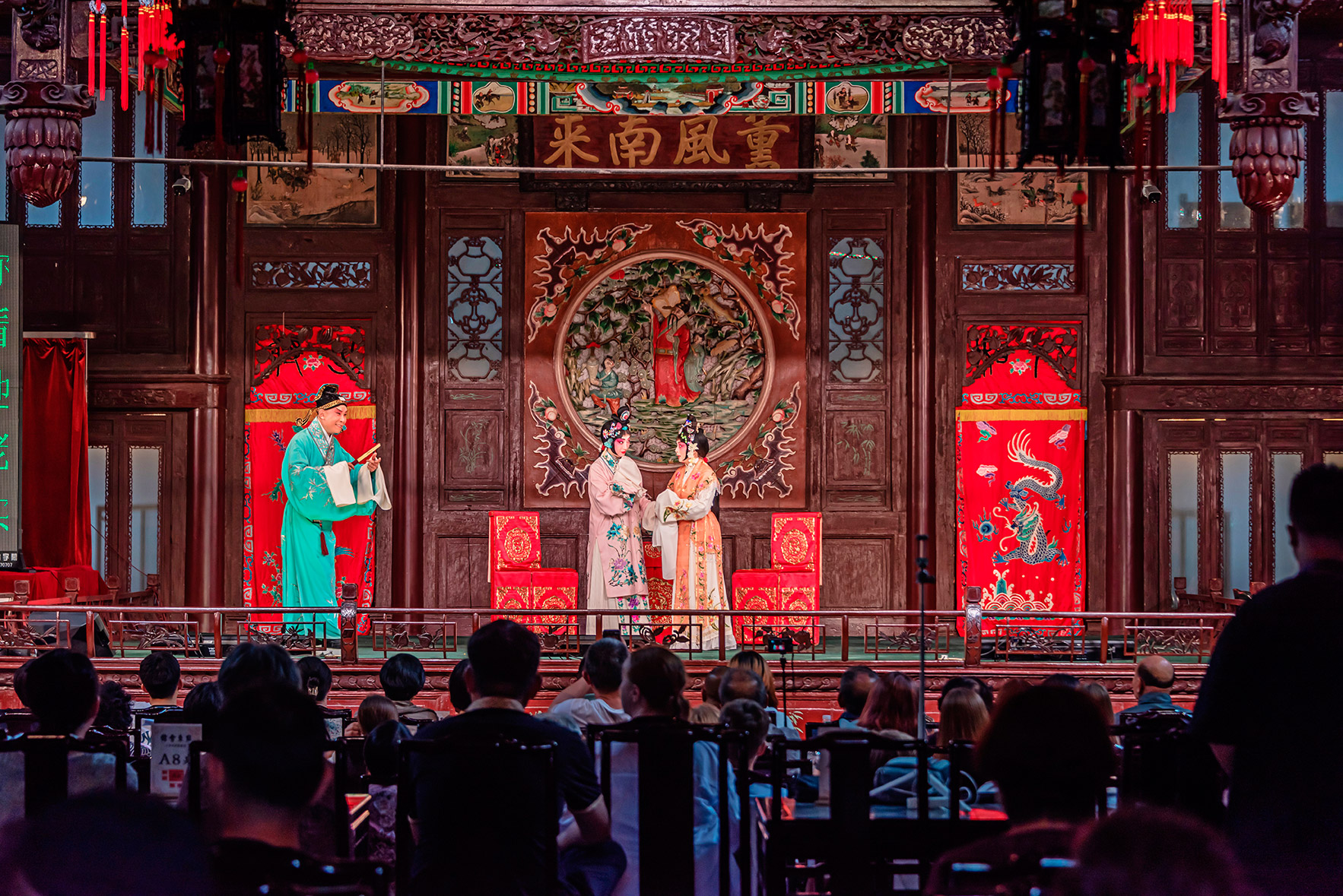 在天津广东会馆内,惠民演出正在上演。