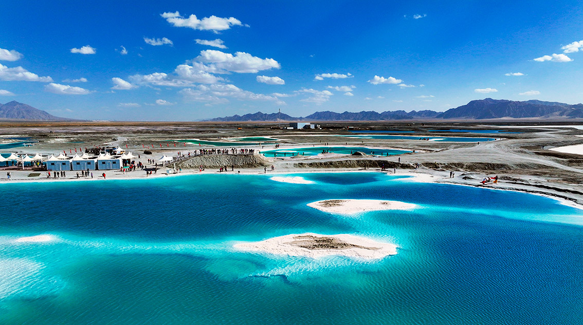 青海省海西蒙古族藏族自治州,大柴旦翡翠湖风景秀美,湖水晶莹剔透,宛如宝石。