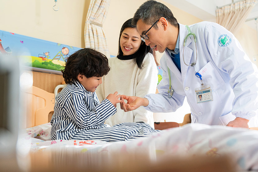 丽水市纵深推进医疗高质量发展行动,努力为群众提供优质便捷的医疗健康服务。图为该市中心医院儿科病房内,医生正为患儿诊治。 陈泳伟/摄