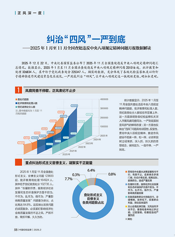 纠治“四风”一严到底——2025年1月至11月全国查处违反中央八项规定精神问题月报数据解读