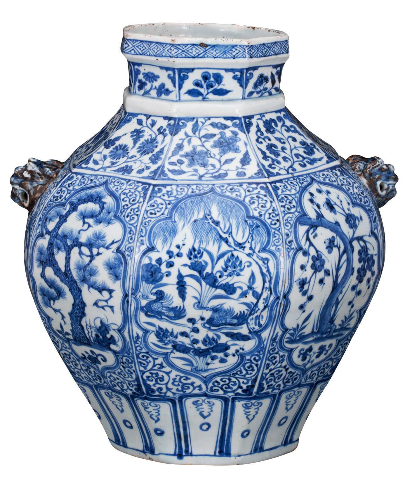 元青花松竹梅纹八棱罐