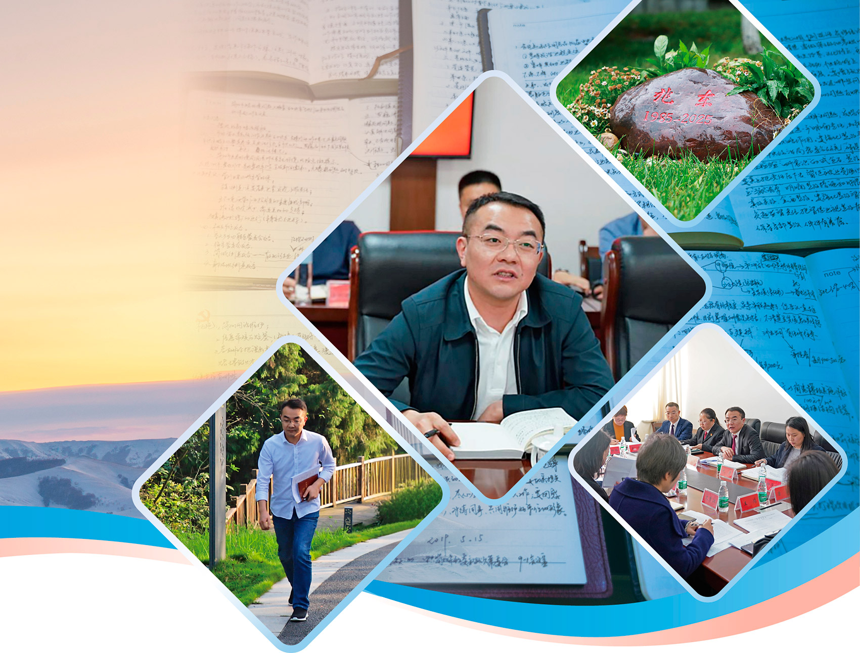 风过沱江,思念长流。榜样的印记,从不会因岁月流逝而褪色。如今,金堂县纪委监委办公楼内的展板上,晋兆东的工作笔记与照片静静陈列,无声激励着后来者。而在他之前奋斗过的简阳市纪委监委机关院内,一块沱江石静卧于草坪之上——这块石头被取名为“兆东石”,本是沱江边一块普通的石头,经流水打磨,内敛而沉静,恰如他的一生:没有惊天壮举,唯有点滴坚守践行使命,一言一行诠释忠诚。