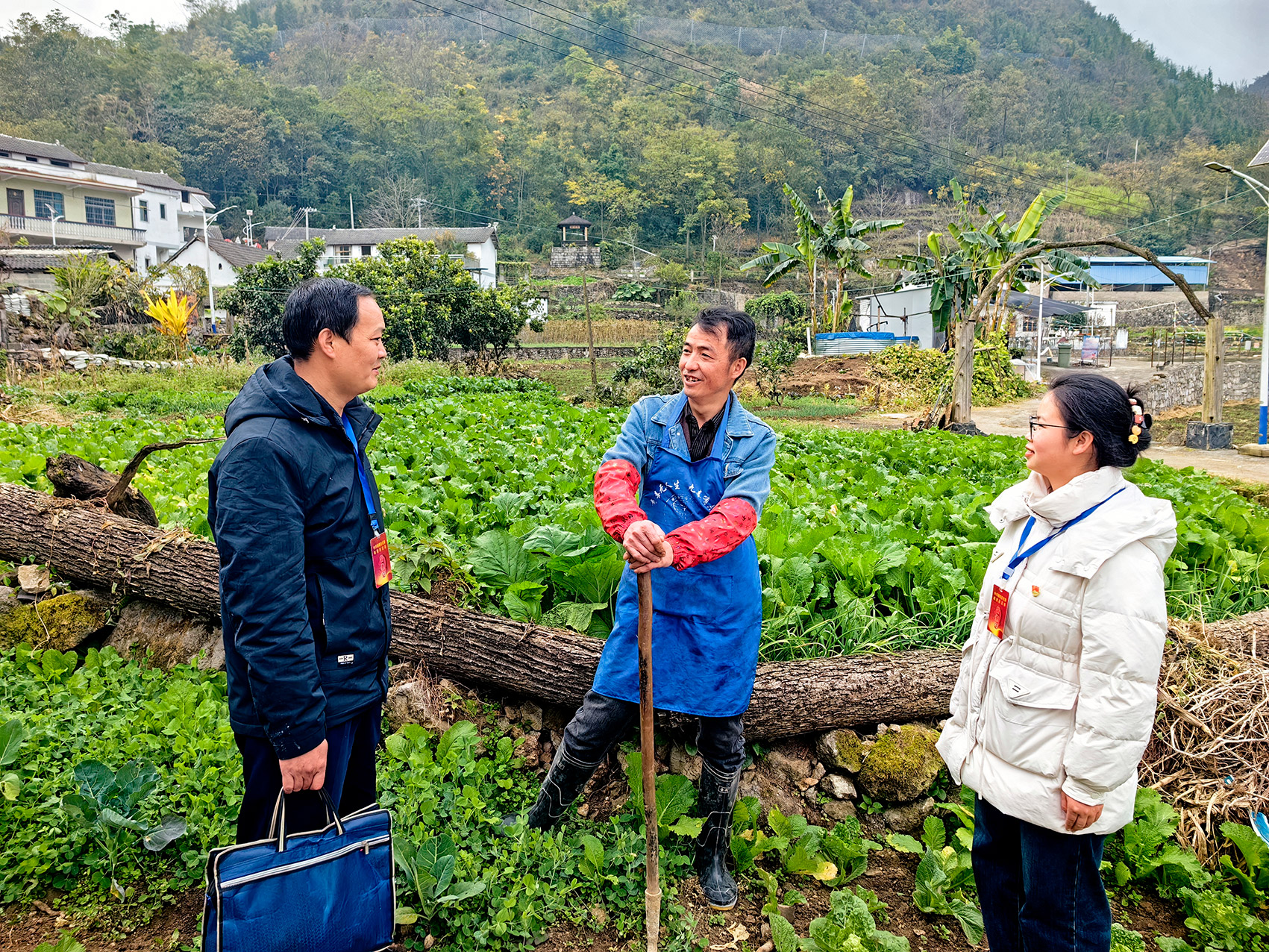 贵州省黔西南州纪检监察干部走访群众,了解退耕还林等补助资金发放情况。